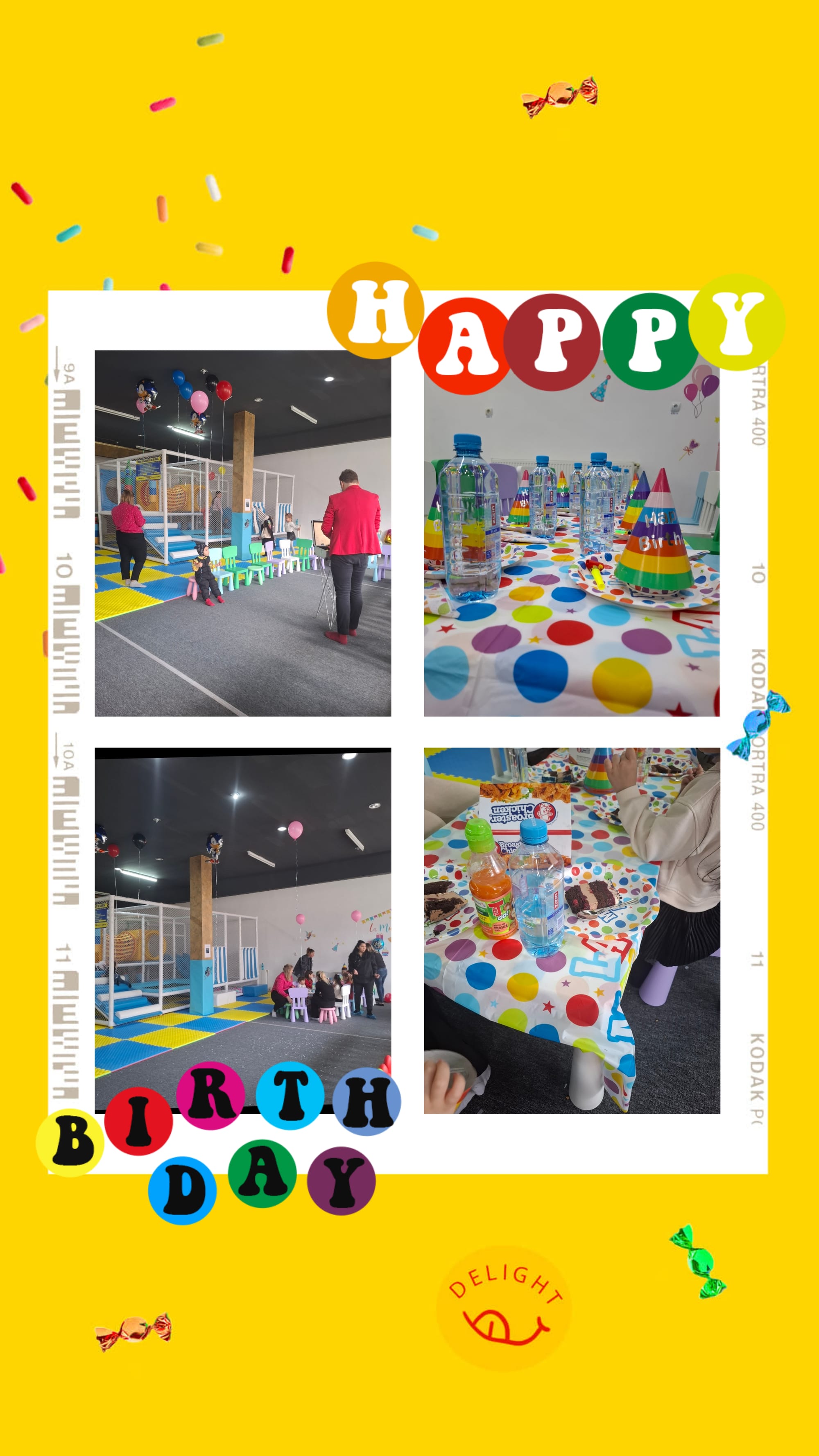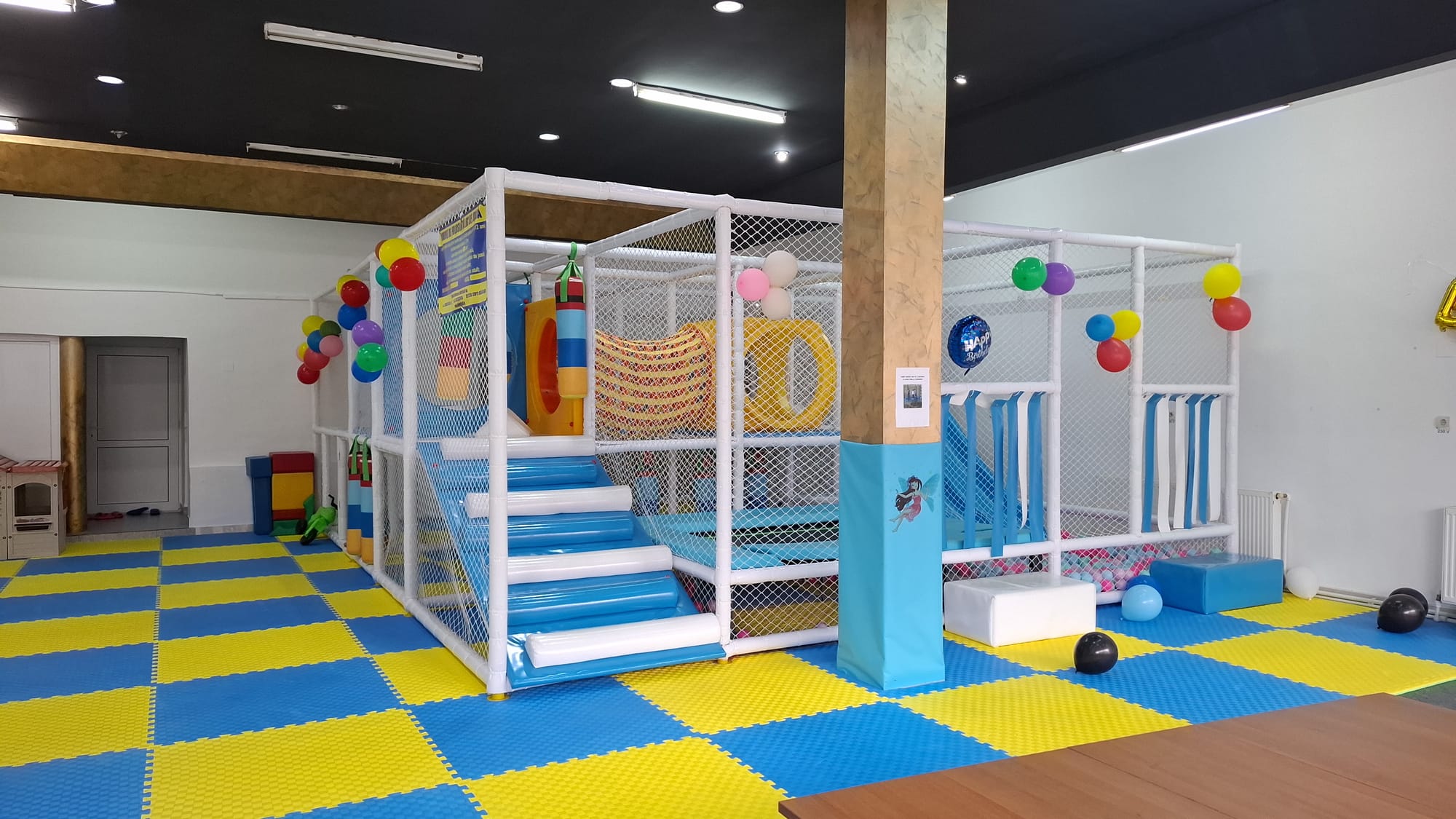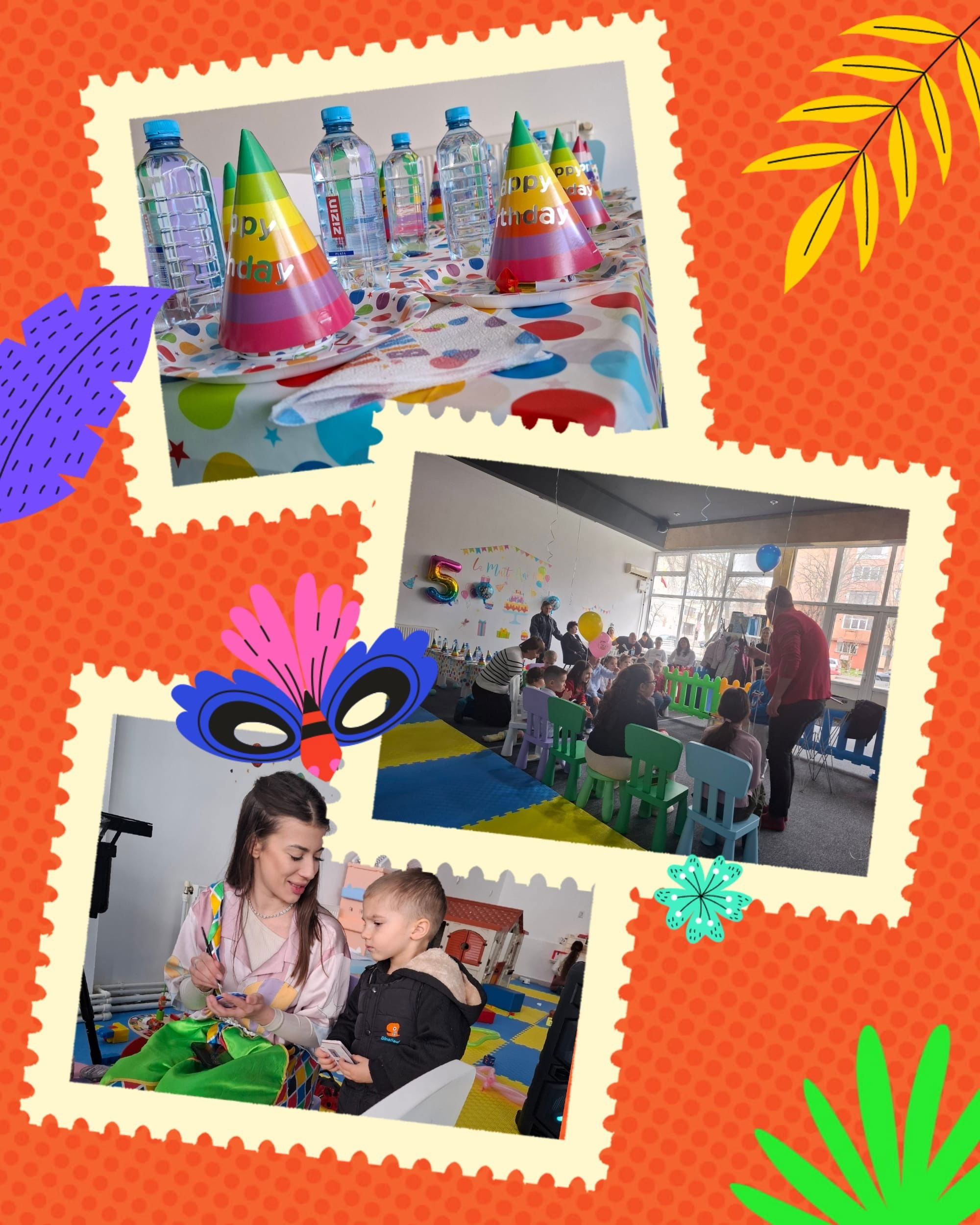 Fă aniversarea copilului tău de neuitat cu ajutorul petrecerilor tematice și activităților special gândite pentru cei mici. Pachet Restrans: - 3h ore de joaca pentru micuțul și prietenii lui - pana la 10 copii - coifuri - suflători - farfurii, tacâmuri, pahare, șervețele - zonă de poze - cifră folie Preț: 400 RON 20 RON/copil extra Pachet Extins: - 3h ore de joaca pentru micuțul și prietenii lui - localul se va închide pe perioada petrecerii - pana la 10 copii - coifuri - suflători - farfurii, tacâmuri, pahare, șervețele - 0.5 l apă plată de copil - zonă de poze - câte o cafea pentru părinții însoțitori - cifră folie Preț: 500 RON 25 RON/copil extra Depasirea celor 3 ore se taxeaza conform listei de preturi ale locului de joaca.